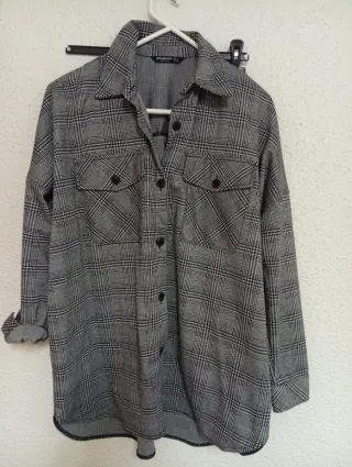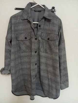 Chaqueta de Stradivarius con un diseño a cuadros clásico. Es una prenda versátil que combina estilo y comodidad. - Diseño a cuadros en tonos grises y negros. - Cierre de botones. - Dos bolsillos en la parte delantera.