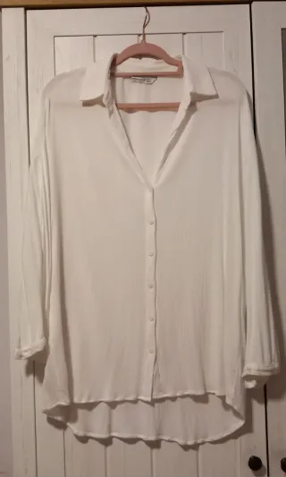 💰SOLO CON PAGO POR WALLAPOP ▶️ELEGIR ENVÍO POR INPOST. NO ENVÍO POR CORREOS!! Elige varios artículos de mi perfil, y paga sólo un envío Camisa de manga larga color blanco con cuello camisero. - Tejido ligero y con textura. - Cierre de botones. - Bajo asimétrico.