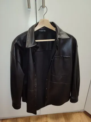 Chaqueta con acabado de piel sintética. - Diseño de camisa. - Cierre de botones. - Bolsillo en el pecho.