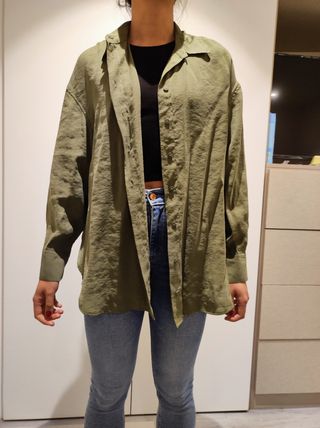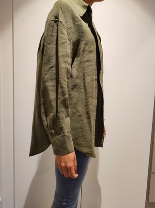 Camisa verde caqui lisa. Talla M. Marca Stradivarius. Altura modelo 1,68m. Peso 60kg. Medida pecho 90A. Se hacen descuento por lotes.