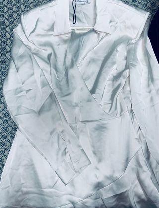 Precio negociable!!! Me costó 30 euros Se puede usar como camisa con un vaquero. Vestido elegante de Stradivarius con un diseño cruzado y manga larga. Perfecto para cualquier ocasión. - Tejido satinado. - Cuello camisero. - Cierre cruzado.