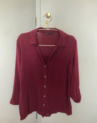 Camisa de Stradivarius en color burdeos. - Diseño de manga larga. - Cierre de botones. - Cuello camisero.