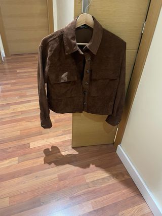 Camisa de pana de Stradivarius. - Color marrón. - Talla M (38/10). - Diseño con dos bolsillos en la parte delantera.