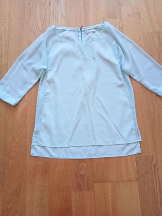Camisa color turquesa con transparencias en los brazos y cremallera en la parte de detrás. Stradivarius talla S.