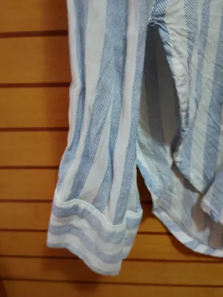 Preciosa camisa a rayas en azul y blanco, talla M. Está en perfecto estado. - Diseño de rayas verticales. - Cuello clásico. - Manga larga.