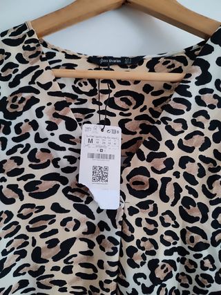 Camisa con estampado de leopardo de Stradivarius. - Diseño con cuello en V. - Mangas ligeramente abullonadas. - Bajo elástico.