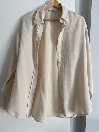Se puede utilizar además como camisa. Es una talla S, pero es grande. Está nueva. Muy combinable al ser beige clarito.