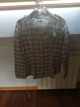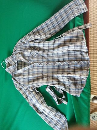 Camisa corta de manga larga con cuadros y bolsillos en el frontal cerrados. Talla S/M Si necesitas más fotos o información no dudes en pedírmela.