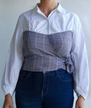 Camisa blanca de manga larga y cuadros grises de New Look talla grande. Se abrocha mediante botones en la parte superior y en la inferior atando los extremos (tiene un pasador). Talla 42 o XL, es ajustable asique puede servir para una talla por debajo y/o una por encima. De hombro a hombro mide 43cm. NUEVA, con etiqueta, sin usar. Queda preciosa y es cómoda y fresca para otoño y entretiempo, buen fondo de armario. Sí hago envíos, sólo VÍA WALLAPOP. Cualquier duda, preguntar sin miedo. Pásate por mi perfil a echar un vistazo :)