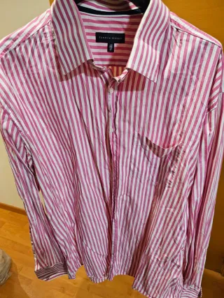 Camisa de manga larga de la marca Tommy Hilfiger. En muy buen estado, necesitaría un buen lavado para refrescarla lleva mucho tiempo en una caja en un trastero y pudiera o pudiese tener alguna manchita... Hago envíos desde otra cuenta Wallapop si fuese necesario... - Cuello abotonado. - Bolsillo en el pecho. - Pequeño logo bordado en el bolsillo. - color rosa pálido Para recoger en Langreo