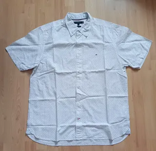 Preciosa camisa de manga corta con un discreto estampado de puntos. Estilo regular fit de la marca Tommy Hilfiger en talla XL. Está en perfecto estado, solo se ha usado una vez. - Cuello clásico. - Cierre de botones. - Logo de la marca en el pecho. Cortefiel Stradivarius Springfield Massimo Dutti zara mango Sfera bimba y lola Adolfo Domínguez desigual brownie Ralph Lauren Gucci balenciaga Prada Dior Chanel Hermés Versace valentino