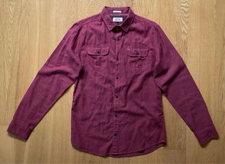 Preciosa camisa de manga larga de la marca Tommy Hilfiger. Es de color rojo burdeos con estampado paisley en azul. - Talla: 12/L - Corte clásico - Botones nacarados Medidas -Hombros: 41cm -Axilas: 52cm -Largo manga: 70cm -Largo: 68cm