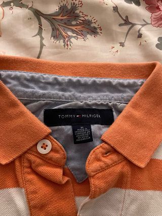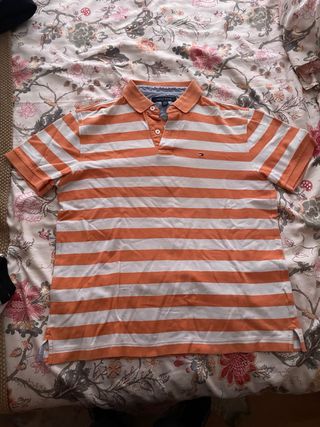 Preciosa camisa polo de Tommy Hilfiger a rayas. Es de color naranja y blanco, y tiene un corte clásico. - Es de manga corta. - Tiene un diseño a rayas horizontales. - Está en buen estado.