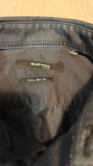 Camisa Burton of London de manga larga en color azul marino con microtextura, corte Extra Slim Fit. Diseño limpio y elegante, con cuello clásico y botones oscuros. Tejido ligero y cómodo, ideal para uso diario o más formal. Talla M (39/40) de hombre. Perfecta para looks de oficina o eventos informales, combina muy bien con chinos claros, vaqueros oscuros o blazer. Apta para otoño, invierno y entretiempo. Medidas (ver fotos): 📏 Axila a Axila: 48 cm 📏 Largo: 68 cm 📏 Hombro a puño: 63 cm ⭐ Perfecto estado ⭐