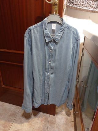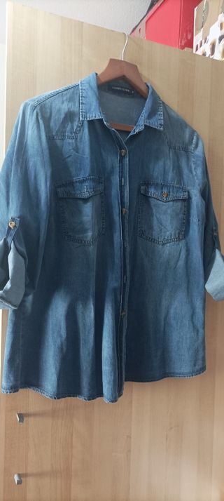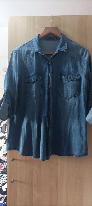 camisa azul vaquera , para llevarla abierta o cerrada , ideal para otoño y primavera