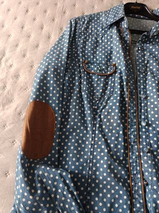 Camisa de manga larga con estampado de puntos blancos sobre fondo azul. - Cuello camisero. - Cierre de botones. - Puños abotonados. Tengo mas cositas en mi perfil😊