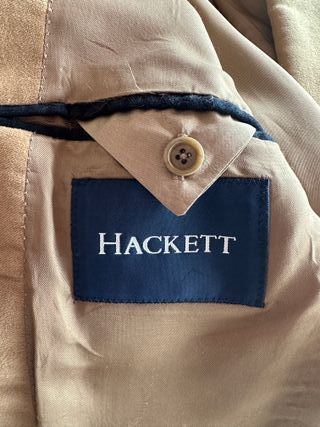 Preciosa americana HACKETT color camel, color muy combinable, ideal para usar a diario, con unos buenos vaqueros y una camisa, queda genial!!! Botones de las mangas practicables, costó 500€, vendo por cambio de talla.