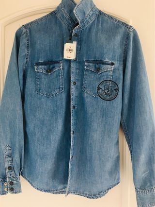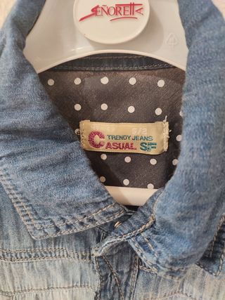 Camisa vaquera sin estrenar , nueva . Talla 14 que corresponde a una S. Botonadura de metal en frontal y en las mangas . Sello de la marca en bolsillo izquierdo