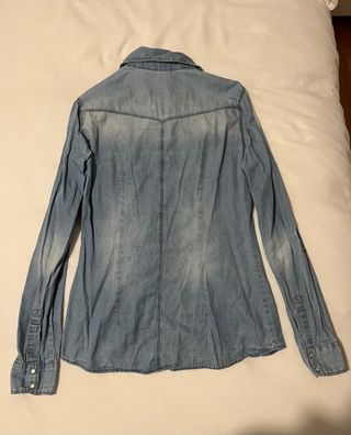 2 camisas vaqueras La más clara de Bershka, talla S- 36 La que es un poco más oscura lazada a la cintura, pone talla L pero es de medidas como la otra