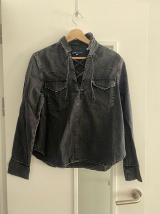Camisa vaquera de Levi's en color negro. Presenta un diseño moderno con cordones en la parte frontal. - Cuello mao. - Bolsillos en el pecho. - Puños abotonados.