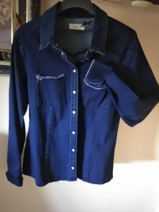 Camisa de estilo vaquero con costuras contrastadas. Denim , es como una cazadora por su grosor,talla 44 como nueva color gris, 100% algodón - Diseño con cuello - Cierre de botones - Bolsillo en el pecho