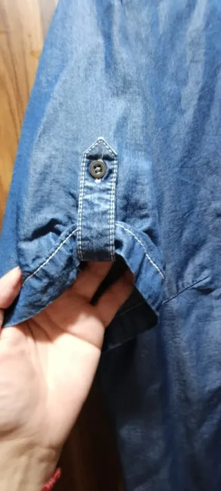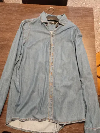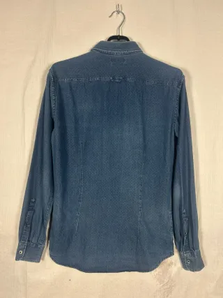 Camisa vaquera de manga larga con dos bolsillos delanteros, cierre frontal de botones a presión combinado con cosidos en puños. 71% Algodón 29% Poliéster Producto en buen estado y muy cuidado. Si necesitas más fotos no dudes en solicitarlas.