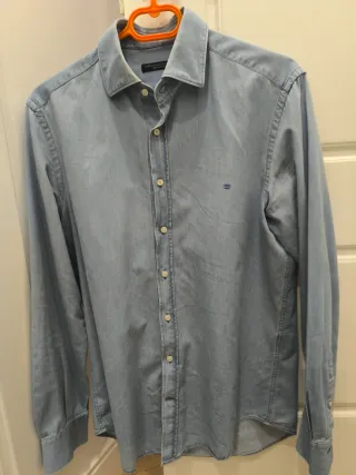 Camisa de manga larga de la marca Hollistet,azul oscuro,es un tono como vaquero,Talla M,puesta en un evento(No envío por correos)