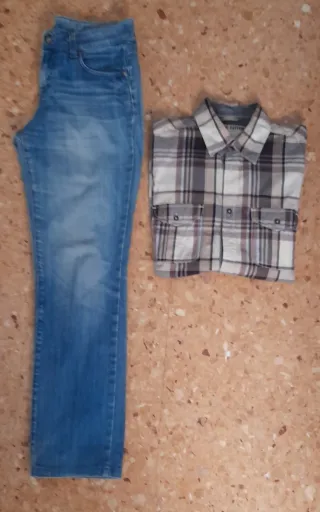 Pantalón vaquero y camisa cuadros hombre Celio.