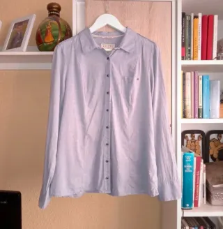 Preciosa camisa vaquera de manga larga en color azul claro. Está en muy buen estado y lista para usar. - Corte clásico. - Dos bolsillos de solapa.