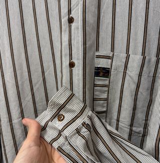 Camisa de estilo retro con un diseño de rayas clásico. - Patrón de rayas verticales. - Cuello abotonado. - Bolsillo en el pecho. Marca de origen alemán, prenda de muy buena calidad y en perfecto estado. Ideal para personas altas ya que es larga. XXL regular fit o XL para un estilo más oversize✨ En perfecto estado.