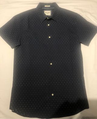 Camisa de manga corta azul marino con puntitos. Talla L aunque es slim. Sin estrenar. Marca Wrangler