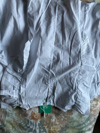 Preciosa camisa de textura arrugada y mil rayas en plata. Los botones son de metal Nueva, sin uso Pecho 48cm, hombro 40cm, largo manga 54cm, largo 59cm, ancho 48cm