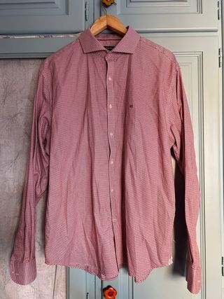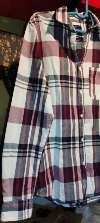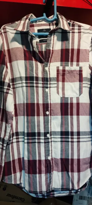 Camisa de cuadros con cuello clásico. Aunque ponga S es una M. Dejo medidas en fotos. - Diseño a cuadros en tonos rojos y blancos. - Bolsillo en el pecho. Más artículos escribiendo algeral en búsqueda general. Se hacen lotes en conjunto con los otros perfiles.
