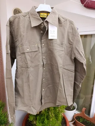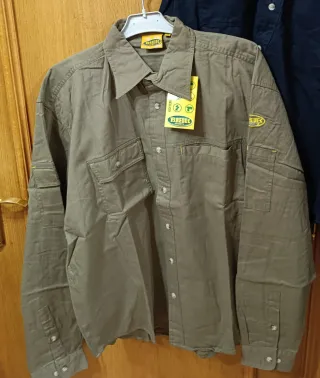 Camisa paredes modelo SOKA talla L En mi perfil más colores y tallas Pecho 60cm, hombro 54cm y largo 72cm 100% algodón color caqui verde Manga larga, 2 bolsillos delanteros y laterales peso 400grs