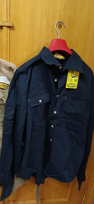 Camisa paredes modelo SOKA talla M En mi perfil más colores y tallas Pecho 58cm hombro 52cm y largo 70cm 100% algodón color azul marino y caqui verde Manga larga, 2 bolsillos delanteros y laterales peso 800grs