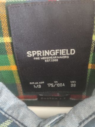 Camisa de cuadros a color azul, blanco y verde. Talla M. está perfecta, sólo se uso en una ocasión.Las mangas tienen botones a la altura del codo para poder remangar y enganchar.