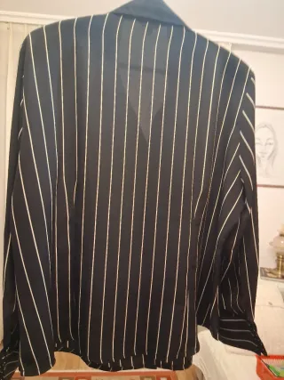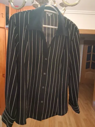 .Camisa de rayas blancas y negras Tela muy agradable Manga larga con puños Medidas: De hombro a hombro 45 ctms De axila a axila 64 ctms Largo de espalda 64 ctms ctms Largo de manga desde el hombro 88 ctms Largo de manga desde la sisa 39 ctm