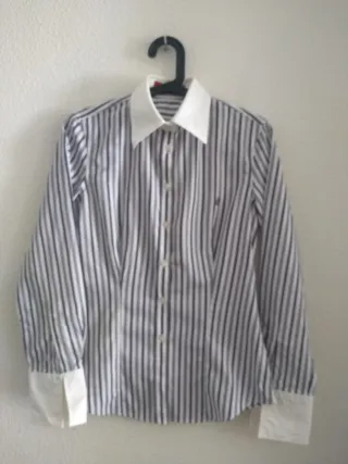 Camisa de vestir con un clásico diseño de rayas. - Diseño de rayas verticales. - Cuello clásico. - Manga larga. Solo se a usado en una ocasion.