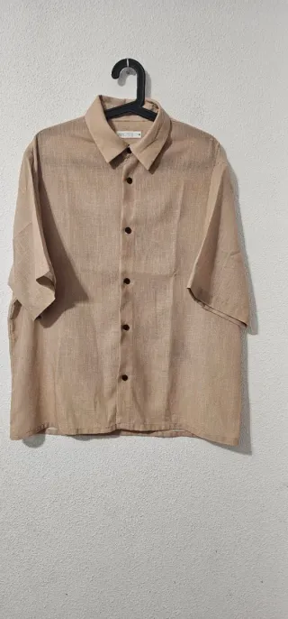 Camisa Zara Hombre Manga Corta Beige Talla XL