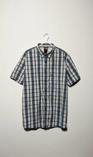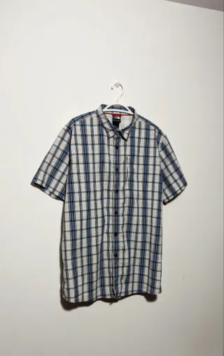 Camisa de manga corta Columbia Titanium. Apenas usado. - Diseño a cuadros finos en tonos beige y blanco. - Cuello camisero. - Cierre de botones. - Tejido ligero y transpirable.