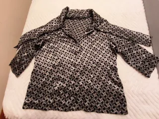 Elegante camisa de Zara con un estampado geométrico en negro y dorado. Su diseño la hace perfecta para ocasiones especiales o para añadir un toque sofisticado a tu look. - Diseño con cuello. - Manga larga. - Tejido satinado.