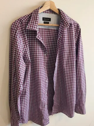 Camisa de cuadros de Massimo Dutti en talla L. Un básico elegante para cualquier ocasión. - Diseño de cuadros en tonos morado y blanco. - Manga larga.