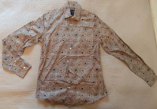 Camisa de manga larga para hombre. En color gris con estampado. Sin estrenar, pero sin etiqueta. Talla S de Springfield.