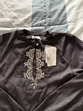 Camisa larga gris con volantes