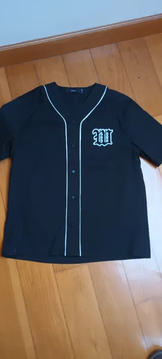 Camisa de Bershka de manga corta. - Diseño con ribetes blancos. - Cierre de botones. - Detalle de logo bordado en el pecho.