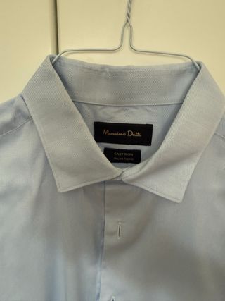 Camisa de vestir azul de Massimo Dutti. - Cuello clásico. - Puños con botones. - Tejido de algodón. Presenta ligera mancha poco visible