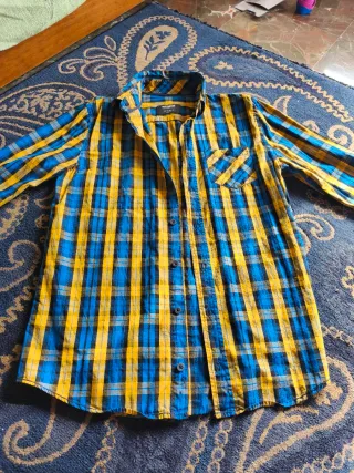 Preciosa camisa desigual poco uso aunque no se ve la talla es una XL tuve que optar la etiqueta porq6 a .i hija le pica