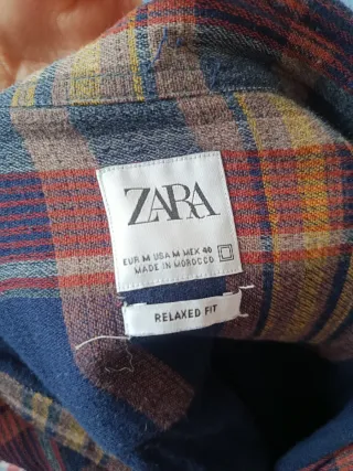 Camisa de manga larga de la marca Zara. - Diseño clásico con botones. - Bolsillo en el pecho con detalle de pines.