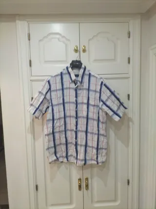 Camisa de manga corta con un diseño a cuadros. Talla M. Usada una sola vez.