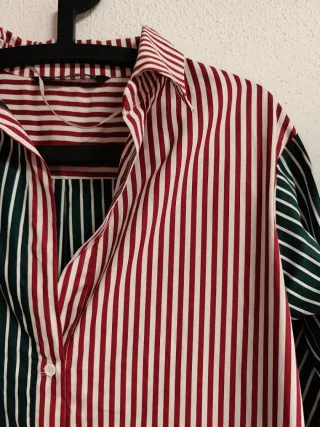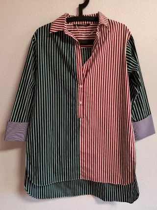 Camisa de chica talla S oversize de zara. Mas larga por detras. En perfectísimo estado. - Diseño de rayas verticales en verde y burdeos. - Cuello camisero clásico. - Puños con raya diplomática.